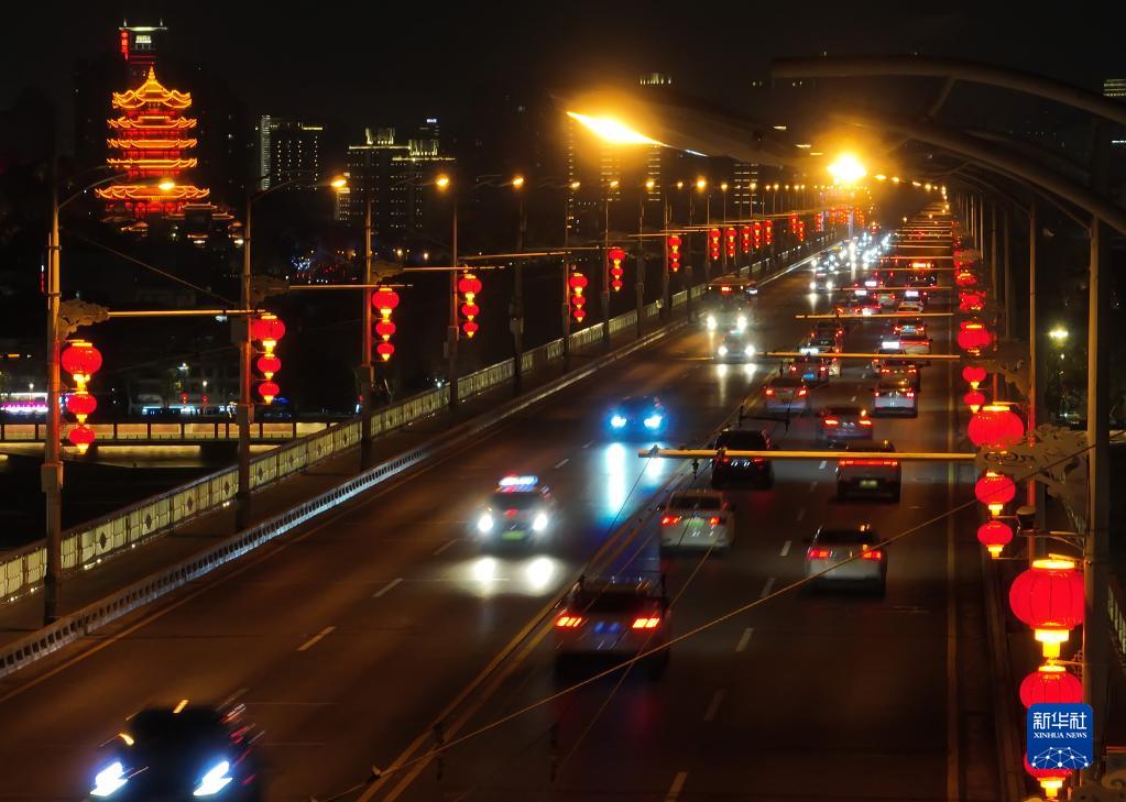 湖北省武漢市黃鶴樓附近路段夜景(1月17日攝,無(wú)人機照片)。