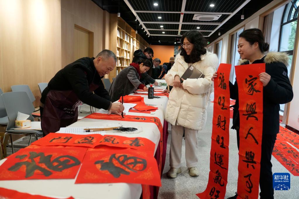 春節臨近,各地舉行寫(xiě)春聯(lián)送祝?;顒?dòng),書(shū)法志愿者為群眾書(shū)寫(xiě)并贈送新春對聯(lián)和福字,送上新春祝福。