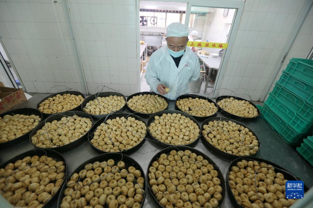 1月17日,在四川省眉山市東坡區三蘇食品廠(chǎng),工人在制作非遺美食龍眼酥。春節前夕,被列入四川非物質(zhì)文化遺產(chǎn)名錄的眉山龍眼酥迎來(lái)生產(chǎn)銷(xiāo)售旺季。