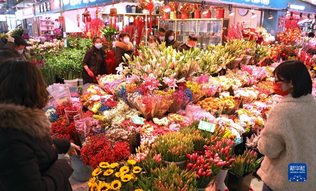1月18日,市民在沈陽(yáng)北市場(chǎng)花卉大廳購買(mǎi)鮮花。