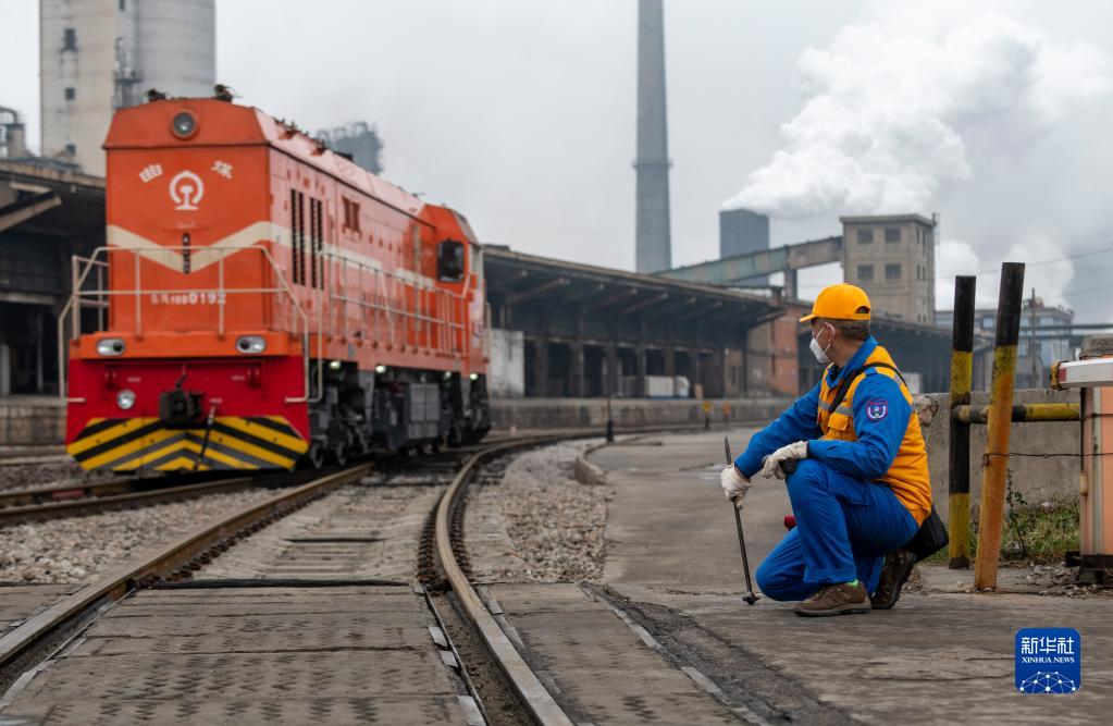 1月17日,彭顯雄在廠(chǎng)區鐵路道口等待一列火車(chē)頭通過(guò)。