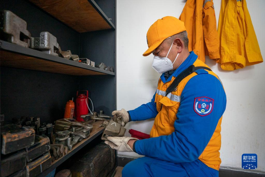 1月17日,彭顯雄在辦公室內查看備品備件。
