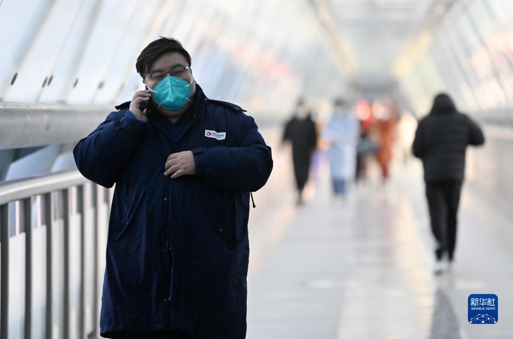 劉洋在天津醫科大學(xué)總醫院邊走邊接聽(tīng)工作電話(huà)(1月18日攝)。