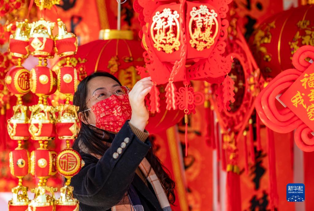 當日是農歷臘月廿八,人們選購各式節慶用品,迎接農歷兔年到來(lái)。