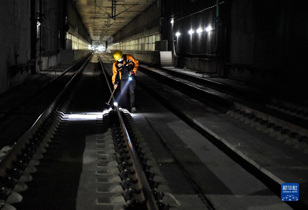 冬日凌晨,地下30米的隧道里,工作人員趴在冰涼的軌枕上,認真檢查每一米線(xiàn)路和每一個(gè)螺絲?!斑@幾天降溫,線(xiàn)路易出現伸縮變化,大家檢查時(shí)一定要仔細?!标愱?yáng)陽(yáng)手持軌道檢查尺一邊仔細測量鋼軌水平數據,一邊交代著(zhù)檢查重點(diǎn)?!半m然夜間工作很辛苦,但看到列車(chē)滿(mǎn)載著(zhù)旅客安全、正點(diǎn)到達目的地,所有的付出都值得?!标愱?yáng)陽(yáng)說(shuō)。