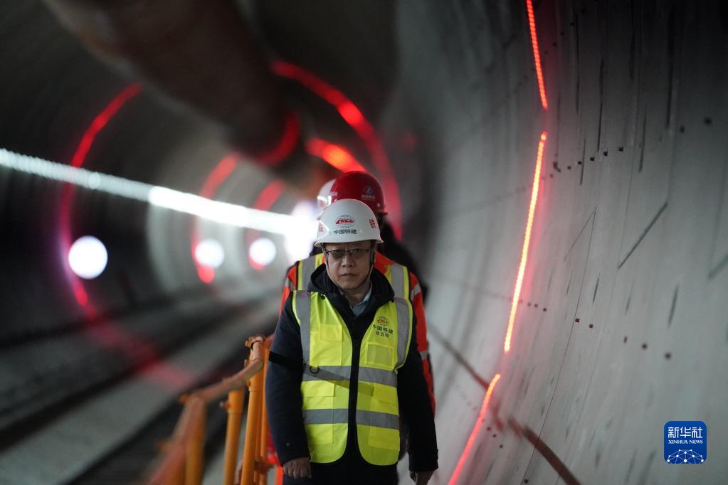 梅東冬在雄安新區至北京大興國際機場(chǎng)快線(xiàn)(R1線(xiàn))一標段項目地下隧道巡查(1月18日攝)。