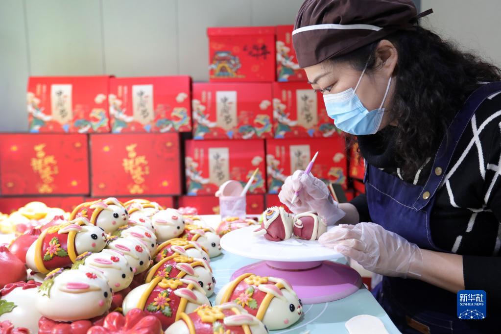 春節臨近,安徽省淮北市一些面點(diǎn)師以兔為主題,創(chuàng )作出各式各樣的“萌兔”花饃,供應節日市場(chǎng),迎接新春佳節的到來(lái)。