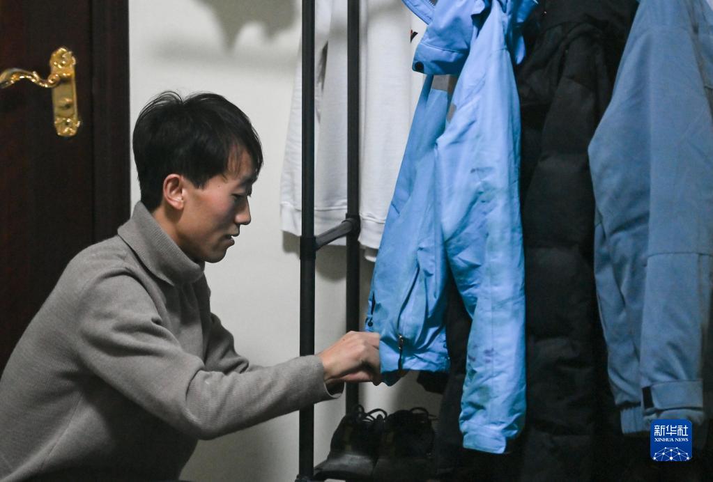 1月19日,李文在房間整理工作服。