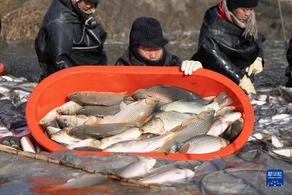 河北唐山:破冰捕魚(yú)供市場(chǎng)