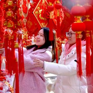 春節將至,在河北省邢臺市南和區的年貨集市,不少市民選購節慶飾品、春聯(lián)、福字等年貨,迎接新春佳節的到來(lái)。