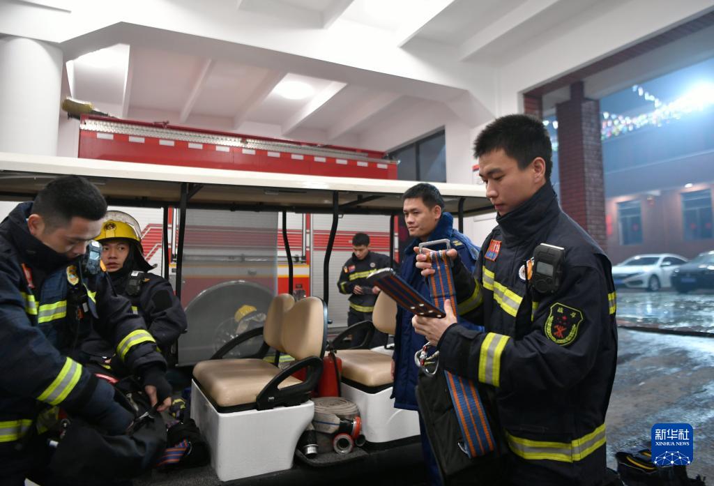 1月21日,福州市倉山區消防救援大隊消防員在整理裝備,準備上街巡查。