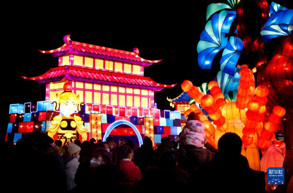 人們在西安城墻新春燈會(huì )賞燈游玩(1月20日攝)。