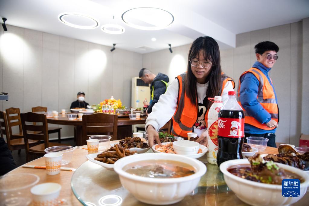 1月21日,在湖南長(cháng)沙梅浦聯(lián)絡(luò )線(xiàn)一標段項目部,駐留工地的中鐵五局二公司工作人員準備聚餐迎接新春佳節。