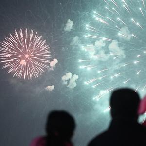 農歷除夕夜,陜西西安市民在觀(guān)看煙花表演中喜迎新年。
