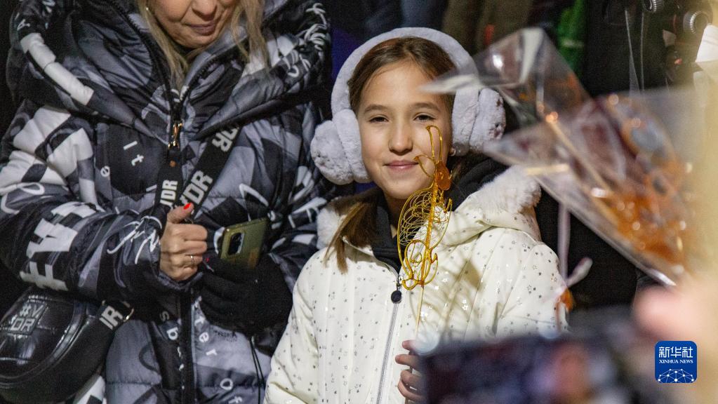 1月21日晚,在塞爾維亞首都貝爾格萊德舉行的“歡樂(lè )春節——絲綢之路上的友誼大篷車(chē)”活動(dòng)上,一名塞爾維亞兒童手舉兔子圖案的糖畫(huà)。