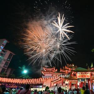 1月22日零時(shí)許,馬來(lái)西亞吉隆坡的天后宮燃放煙花,慶祝農歷新年的到來(lái)。