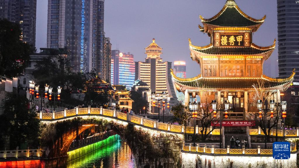 1月22日,人們在貴陽(yáng)市南明區甲秀樓游玩。