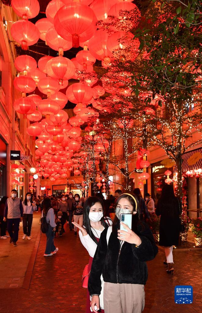1月22日,人們在掛滿(mǎn)紅燈籠的香港利東街觀(guān)光。