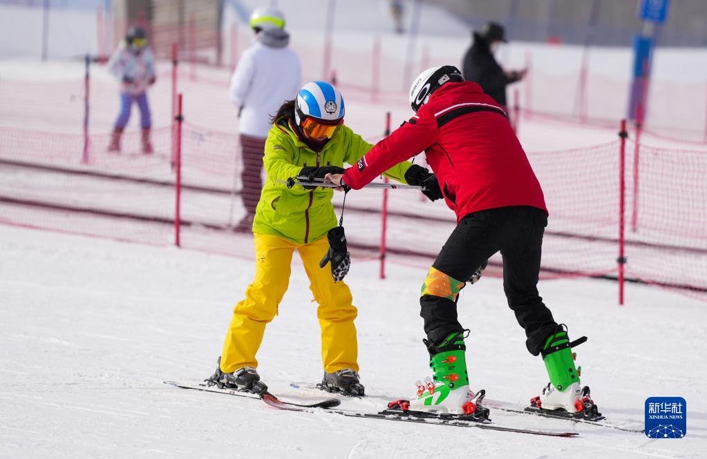 1月22日,滑雪愛(ài)好者在位于河北省張家口市崇禮區的太舞滑雪場(chǎng)練習滑雪。