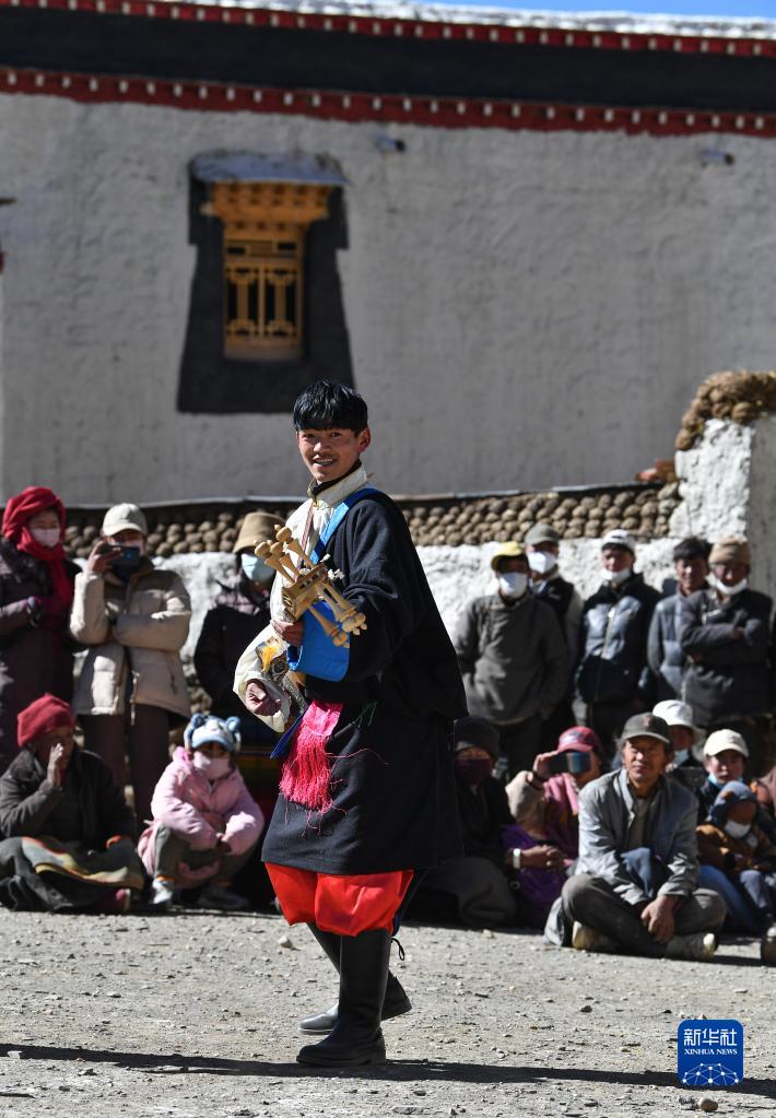 西藏日喀則市芒普鄉普村文藝演出隊的演員在表演(1月21日攝)。