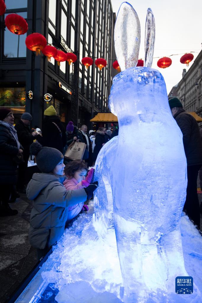 赫爾辛基的中國新年慶?;顒?dòng)21日在市中心舉行。串串火紅的燈籠將街道裝飾一新,以兔子為主題元素的冰雕展和舞獅等傳統民俗表演吸引了大批民眾。