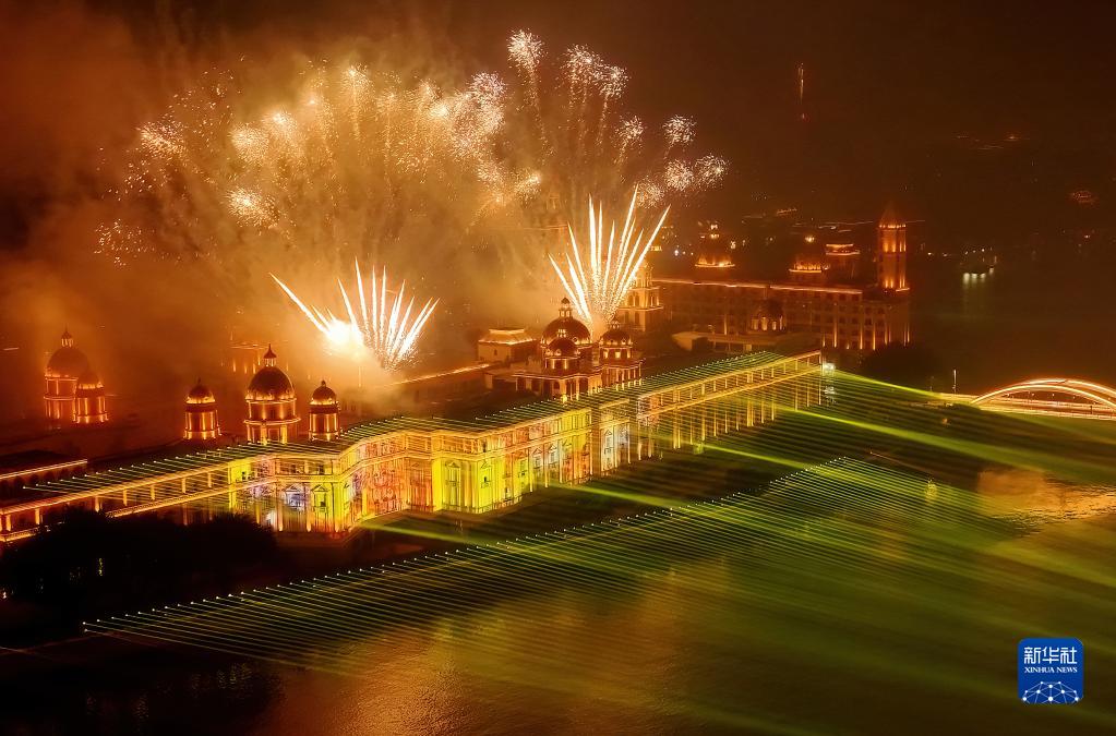 除夕當晚,“光影焰火歌舞嘉年華”活動(dòng)在福建省福州市“閩江之心”舉行,光影與焰火相融合,為人們呈上一場(chǎng)全景光影秀。