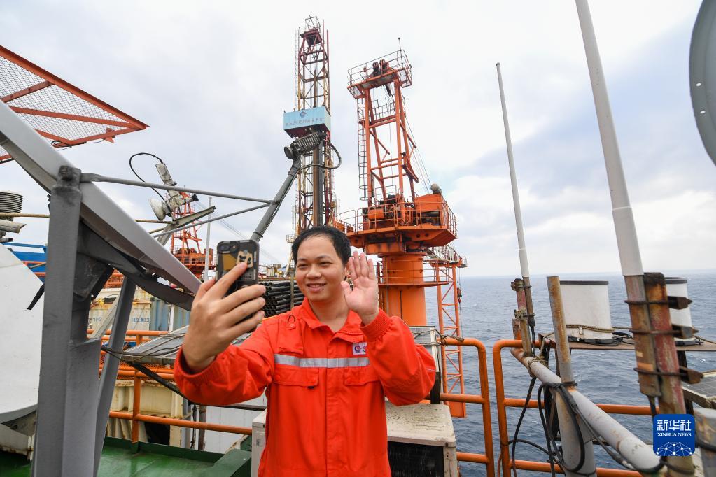 1月20日,李錫鴻在鉆井平臺生活區與妻子打視頻電話(huà)。南海東部油田由于離岸較遠,曾經(jīng)長(cháng)期無(wú)法收到手機信號。隨著(zhù)我國海上平臺通信網(wǎng)絡(luò )基礎設施建設全面鋪開(kāi),遠離陸地的“石油人”能夠經(jīng)常通過(guò)手機與家人朋友聯(lián)絡(luò )。