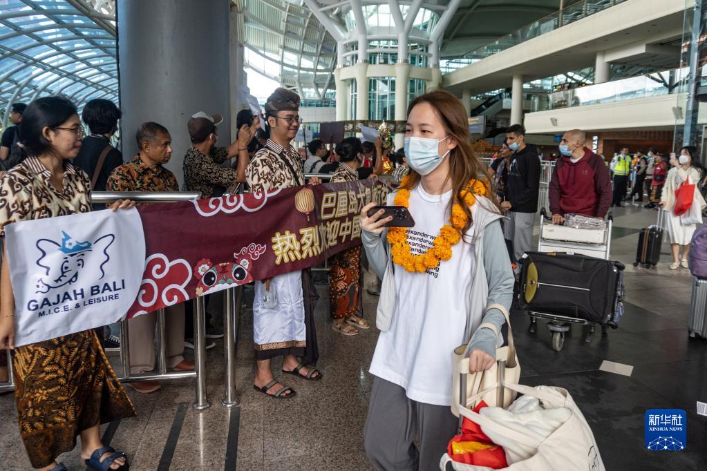 當天,旅游勝地巴厘島迎來(lái)2023年首架中國游客包機。乘客從中國深圳飛抵巴厘島后,在機場(chǎng)受到熱烈歡迎。
