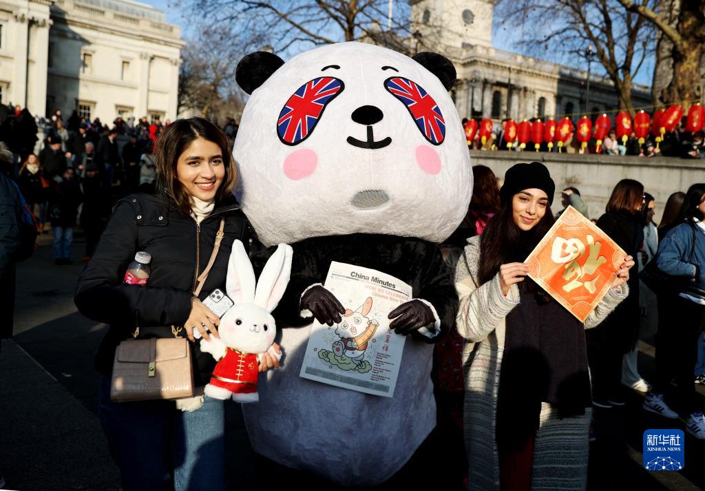 當日,英國倫敦特拉法加廣場(chǎng)舉行春節慶典,慶祝兔年新春佳節。