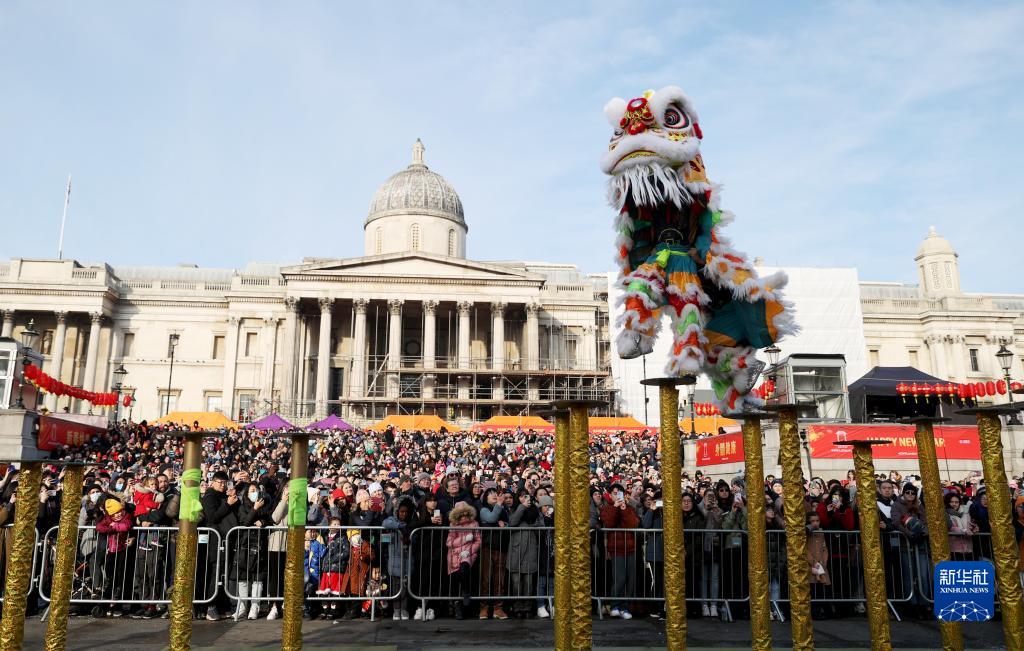 當日,英國倫敦特拉法加廣場(chǎng)舉行春節慶典,慶祝兔年新春佳節。