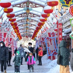 1月23日,市民和游客在烏魯木齊大巴扎景區觀(guān)光。