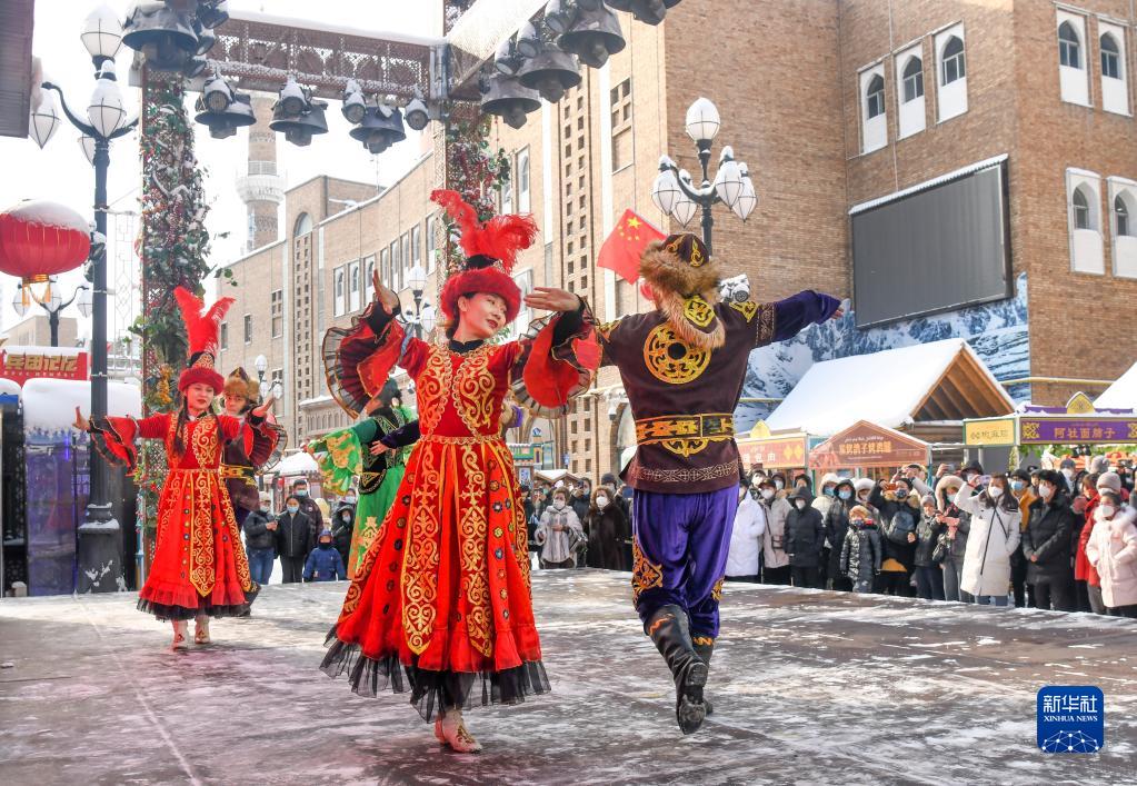 春節期間,新疆烏魯木齊文化活動(dòng)精彩紛呈,不少市民和游客趁著(zhù)晴好天氣,來(lái)到烏魯木齊大巴扎景區觀(guān)賞歌舞表演、購買(mǎi)特色商品,樂(lè )享假日生活。