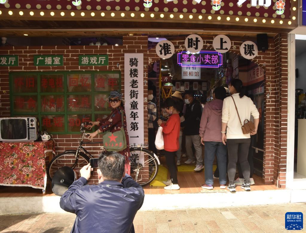 當日是大年初二,不少市民游客來(lái)到??隍T樓老街“打卡”過(guò)春節。騎樓老街是??诘牡貥私ㄖ?,也是尋找海南傳統年味的好去處。