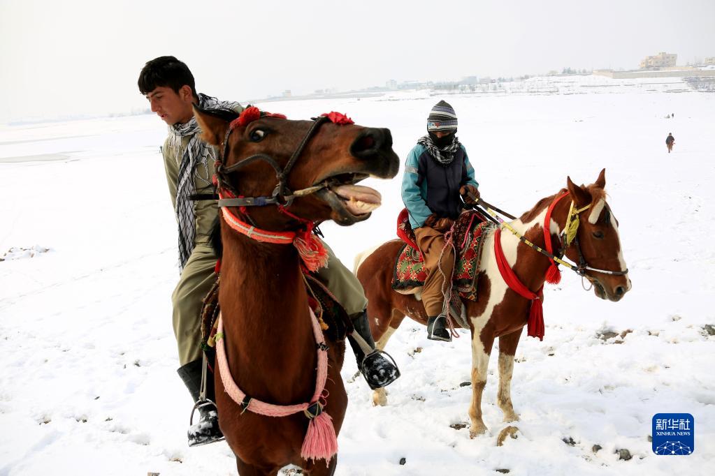 1月23日,在阿富汗首都喀布爾,男子騎馬從雪地上走過(guò)。