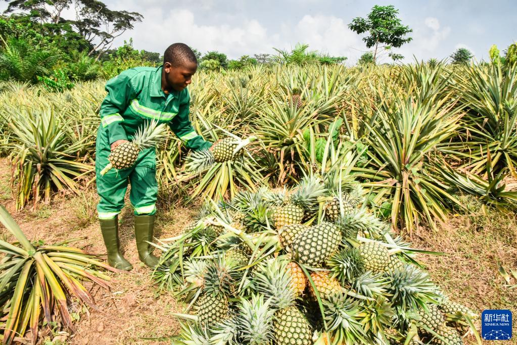 1月11日,在喀麥隆亞巴西,一名學(xué)生在農業(yè)職業(yè)技術(shù)中學(xué)實(shí)踐園摘菠蘿。