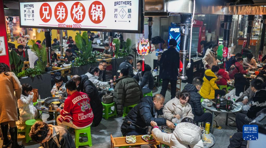 1月23日,人們在貴州省貴陽(yáng)市南明區“青云市集”品嘗特色美食“烙鍋”。