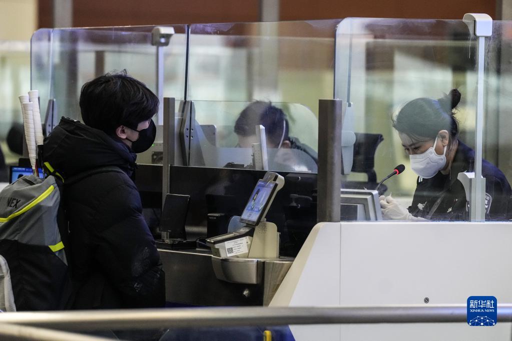 1月24日,旅客在沈陽(yáng)桃仙國際機場(chǎng)通關(guān)。
