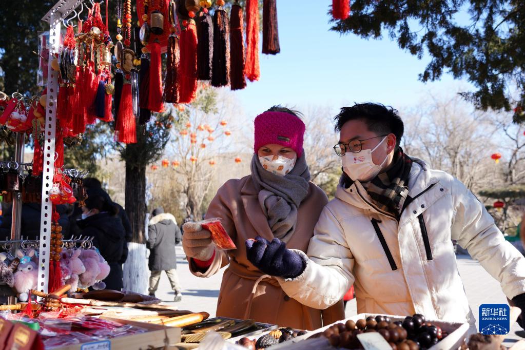 1月24日,張珍妮和丈夫在北京八大處公園舉辦的第十屆八大處新春文化廟會(huì )游玩。