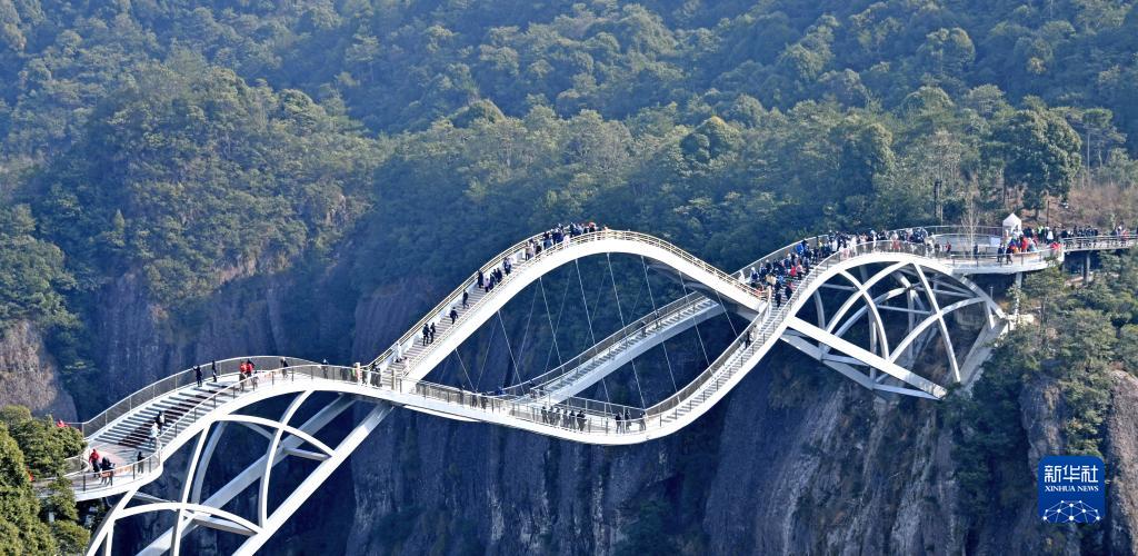 1月24日,游客在浙江省臺州市仙居縣神仙居景區游玩。