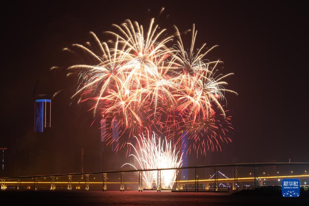 1月24日,澳門(mén)特區在旅游塔對開(kāi)海面舉辦賀歲煙花匯演。