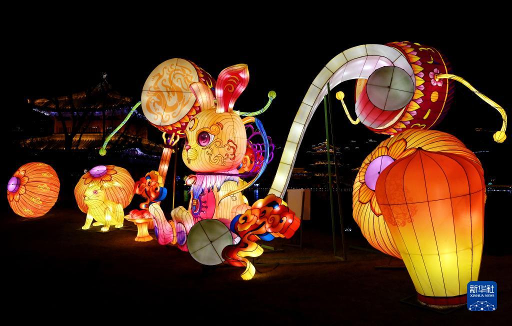 夜幕降臨,西安大唐芙蓉園內萬(wàn)盞花燈璀璨綻放,在仿唐式園林的亭臺樓閣、廊橋水波之間,燈與景交相輝映,美輪美奐。