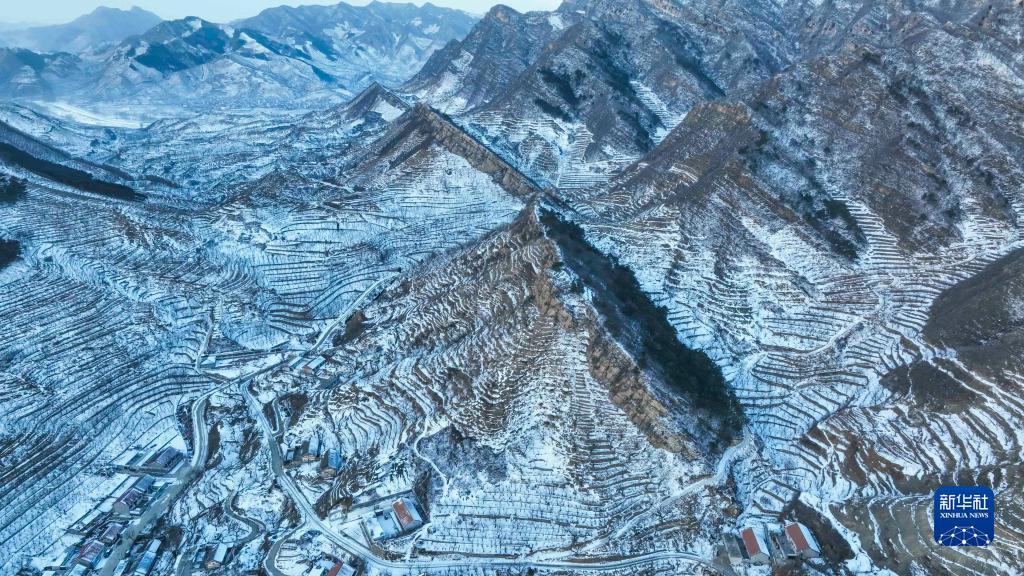 這是1月26日拍攝的河北省遷西縣漢兒莊鎮的村莊和梯田雪景(無(wú)人機照片)。