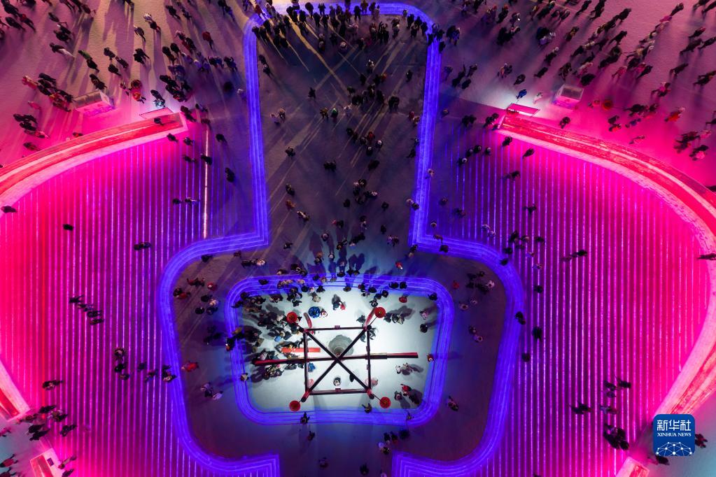 這是1月25日拍攝的哈爾濱冰雪大世界園區夜景(無(wú)人機照片)。