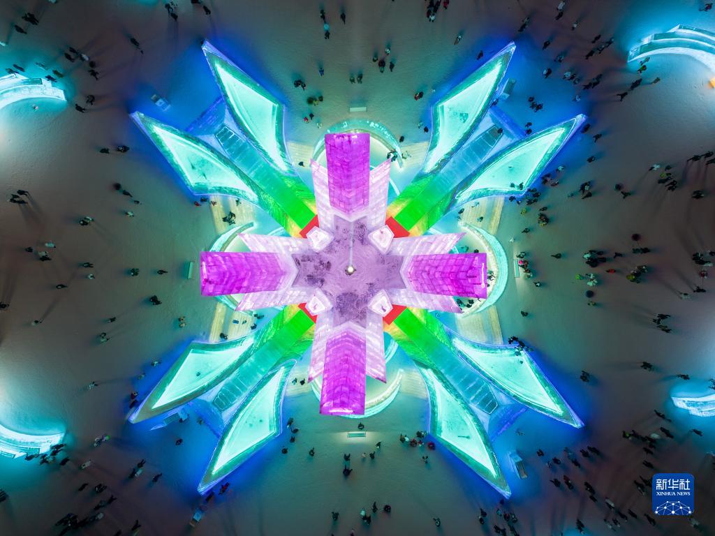 這是1月25日拍攝的哈爾濱冰雪大世界園區夜景(無(wú)人機照片)。