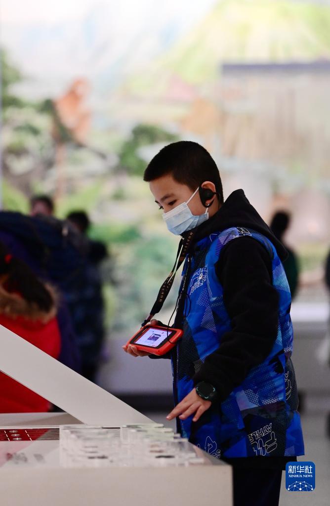 1月25日,一位小游客在陜西考古博物館參觀(guān)。