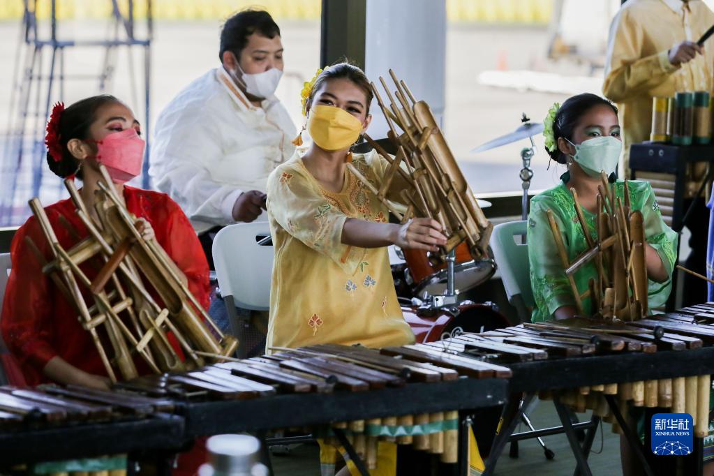 1月24日,在菲律賓馬尼拉國際機場(chǎng),當地藝人進(jìn)行特色民樂(lè )表演。