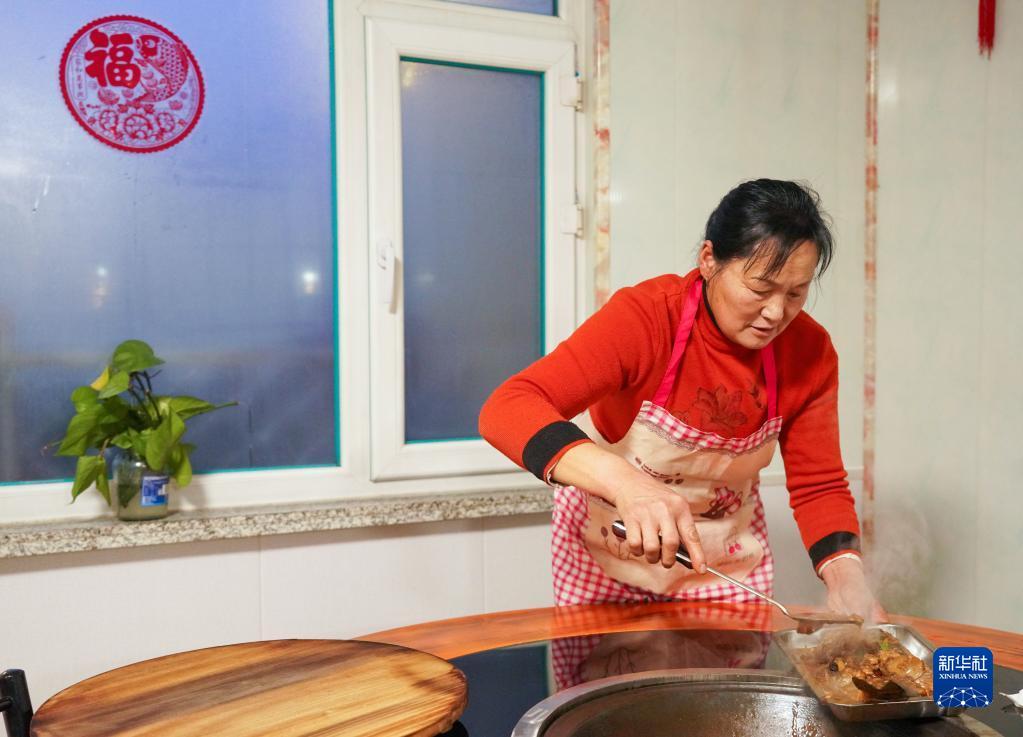 張紅霞在家中為雪友準備年夜飯(1月21日攝)。