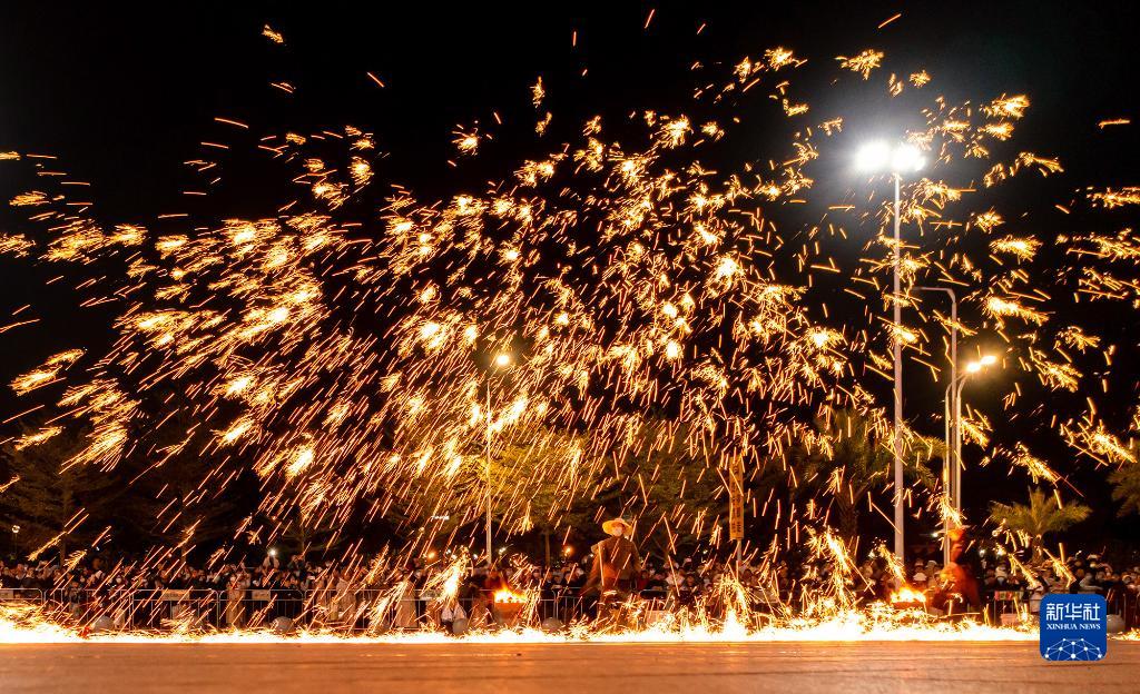 當晚,廣東省揭陽(yáng)市上演了一場(chǎng)精彩的“打鐵花”非遺表演活動(dòng),吸引了大量市民和游客前來(lái)觀(guān)賞,營(yíng)造出濃郁的節日氛圍。