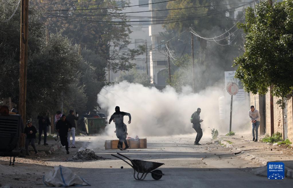 1月26日,在約旦河西岸北部城市杰寧,巴勒斯坦抗議者與以色列軍隊發(fā)生沖突。