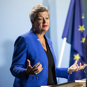 1月26日,在瑞典首都斯德哥爾摩,歐盟委員會(huì )負責內部事務(wù)的委員于爾娃·約翰松(左)在新聞發(fā)布會(huì )上發(fā)言。